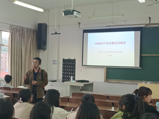 鲁书记从“申请入党”、“入党积极分子的确定和培养教育”、“发展对象的确定和考察”、“预备党员的接收”、“预备党员的教育考察和转正”五个方面进行讲解。随后鲁书记介绍了《党员组织档案材料目录》并向我们解读了《中国共产党发展党员工作细则》,这让同学们对入党程序有了更加清晰的了解。