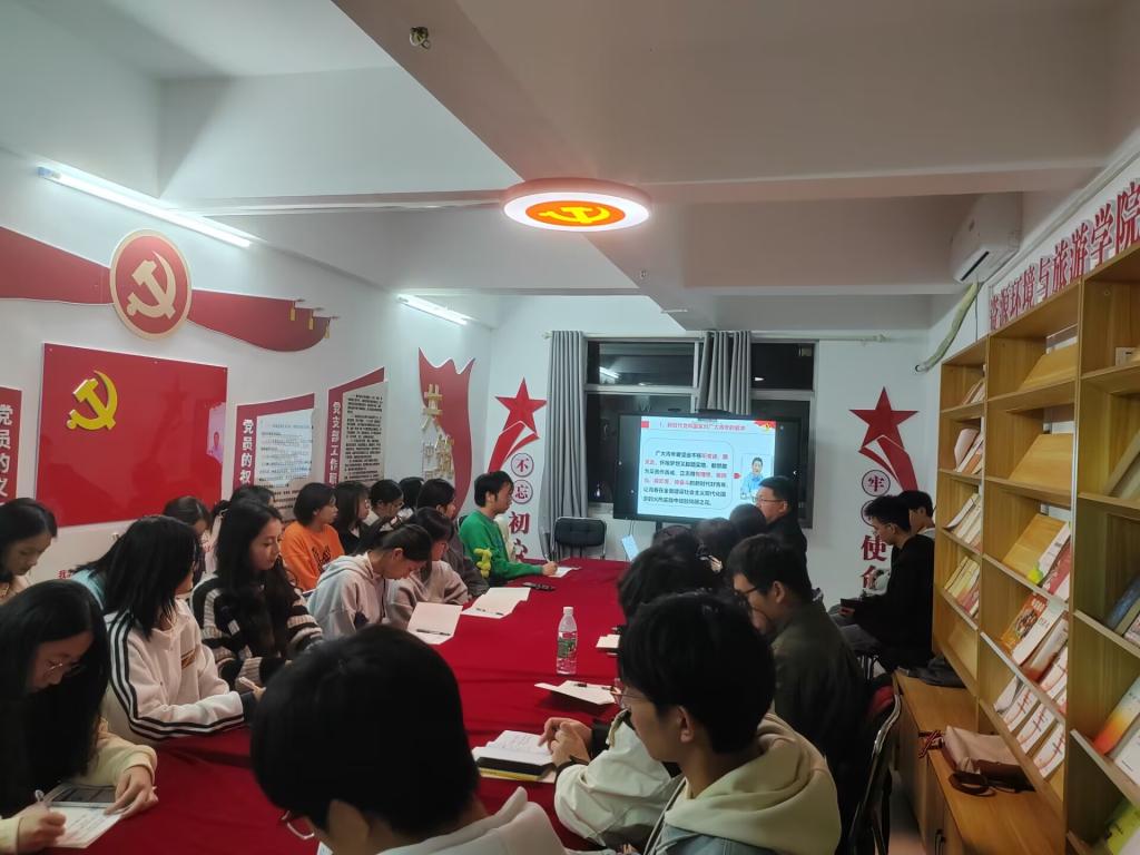 杨霄讲述了入党誓词的发展历史,并带领着同学们深入分析了入党誓词的内涵。杨霄通过对100多年中国共产党入党誓词的沿革和内涵的分析指出入党誓词的沿革反映了我们党从不放松党的建设,善于把握不同历史时期的主题和要求并以此发展党员,高度重视对党员进行党性教育和理想信念教育,具有与时俱进的先进性。
