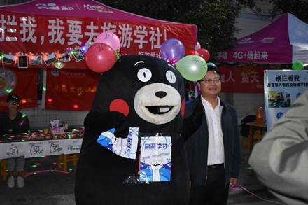游园会前夕,旅游学社各部门成员就积极准备,期待让新生看到不一样的社团风采。19日当天,成员积极参与,布置展台,策划宣传招新流程。当晚,唱歌、跳舞、熊本熊玩偶贯穿于整个招新过程,吸引众多新生目光。