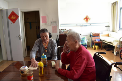 志愿者在老年公寓采访宋家错,提到往事,妻子孙运提止不住抹眼泪