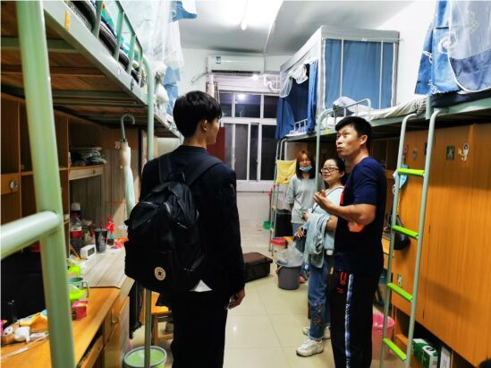 进入员工公寓后,康玲老师、李海老师与同学们展开亲切交谈,向同学们介绍自己后,叮嘱同学们在大学集体生活中寝室就是家,要团结协作,多多交流。同时,康玲老师对寝室内行李摆放提出建议,确保同学们能享有一个舒适整洁的休息环境。