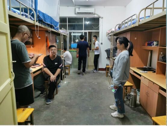 (威廉官方网站 通讯员 郭惠惠)为让2021级新生更好地融入老员工活,熟悉寝室环境,9月7日晚,威廉官方网站旅游管理2111班班主任康玲、辅导员李海、助班郭惠惠和孟子豪前往员工公寓慰问报到新生,叮嘱开学注意事项的同时,勉励同学们在新的学期里不忘初心,奋力前行。
