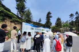 在三峡茶旅小镇,小镇综合办主任高峰为同学们讲解了三峡茶旅小镇的发展理念、规划、建设历史等,将景区的旅游体验项目与设计理念等相结合,帮助同学们进一步扩展与加深对旅游景区资源利用与项目设计等方面的理解与认知。