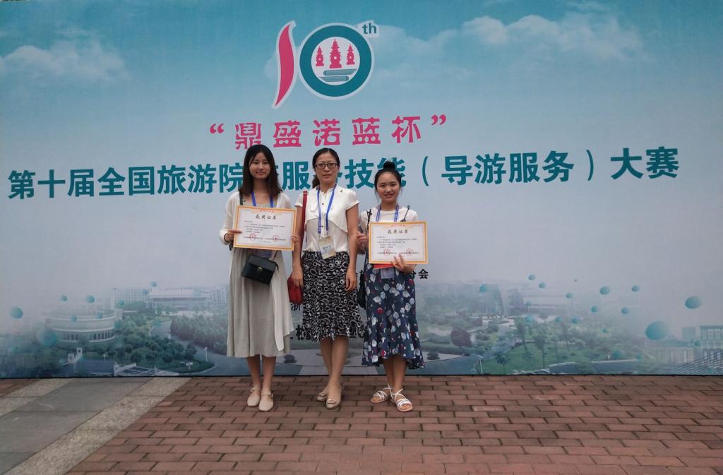 参赛的两位选手沉着应赛,在理论知识考核、导游讲解和才艺展示三个环节充分展示了深厚的专业技能和表演才华,通过层层选拔最终入围到决赛。最终,廖雪娇同学获得个人一等奖、汤桂林同学获得个人三等奖的优异成绩。
